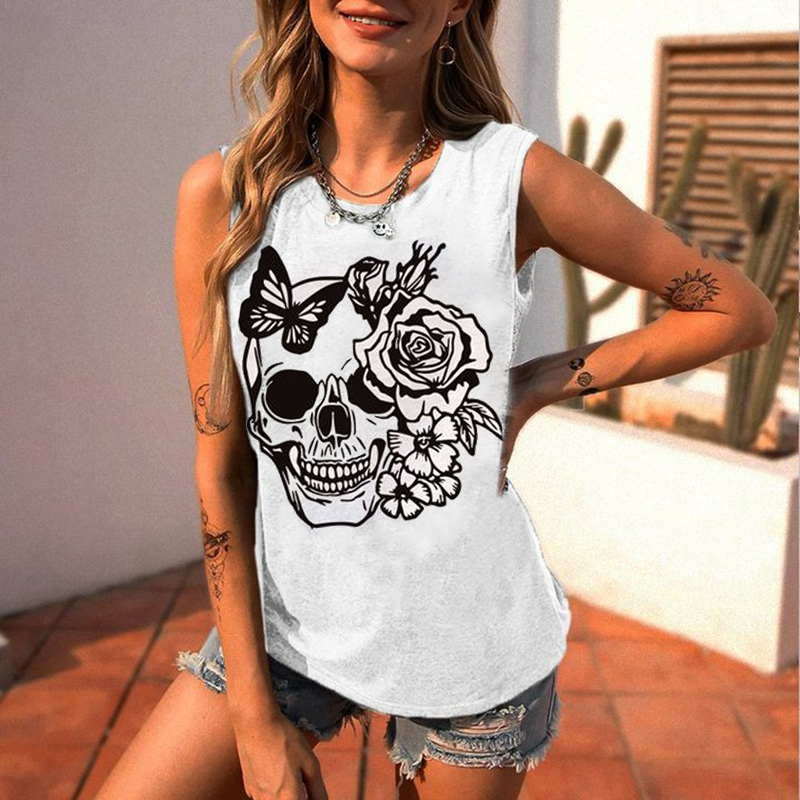Casual all-match skull print women's vest